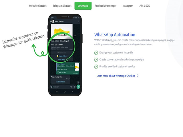 Seamless cross-channel communication with our intuitive omnichannel chatbot platform. Embed your chatbot across Facebook, WhatsApp, Instagram, Telegram, Website & Power your customer service!
