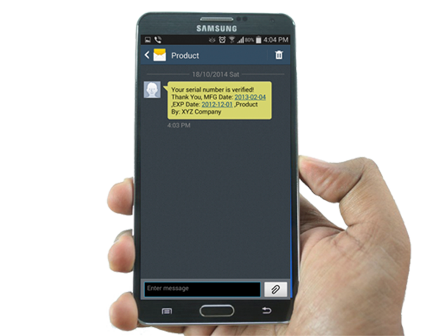 A company made a product in the factory, it is labeled with a unique code. When you purchase that product you will see a unique code, which is printed on the lable, send this unique code to given short code (4474) number and receive an SMS, which tells you is this product is genuine and provides you with a batch number, expiration, and other information.