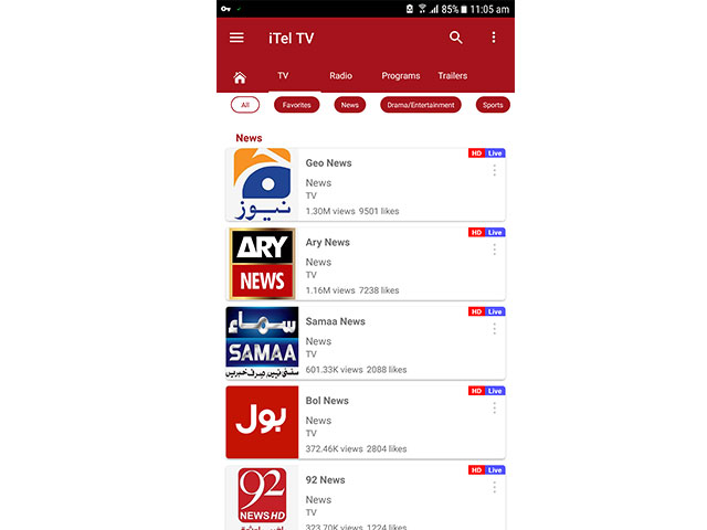 iTel TV app is providing Live Channels, Movies, Songs and FM Radios. iTel TV provides High definition live streaming.